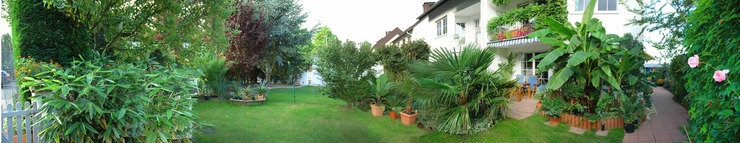 nachdem es endlich auch bei mir mit dem Bildereinfügen klappt möchte ich mal ein Panoramafoto aus meinem bescheidenen Garten zeigen. Momentan sieht alles noch sehr schön aus.