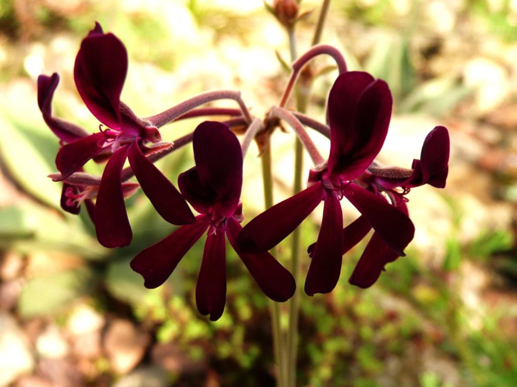 Wartet mit den fast schwarzen dunkelviolettroten Blüten auf ihren ersten Winter /*Pelargonium sidoides*/ die "Hustengeranie" oder als modernes Phytobioticum bekannter unter dem Namen "Umckaloabo". Kommt aus dem Sommerregengebiet des oestliche Suedafrika und klettert bis auf ca. 2700 m in die Berge. Dass die Pflanze keinen Frost verträgt stimmt so nicht - die Saunders aus Kapstadt geben die Winterhärtezone 7 an, also auf in den ersten Winter: