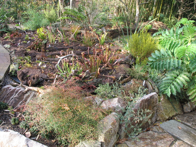 auch zum 1. Dezember zeigt sich das Hochmoor noch ansehnlich. Natürlich, erste Pflanzen haben eingezogen, andere stehen noch unversehrt da - selbst Melianthus major (rechts) hat den bisherigen Frostnächten getrotzt.