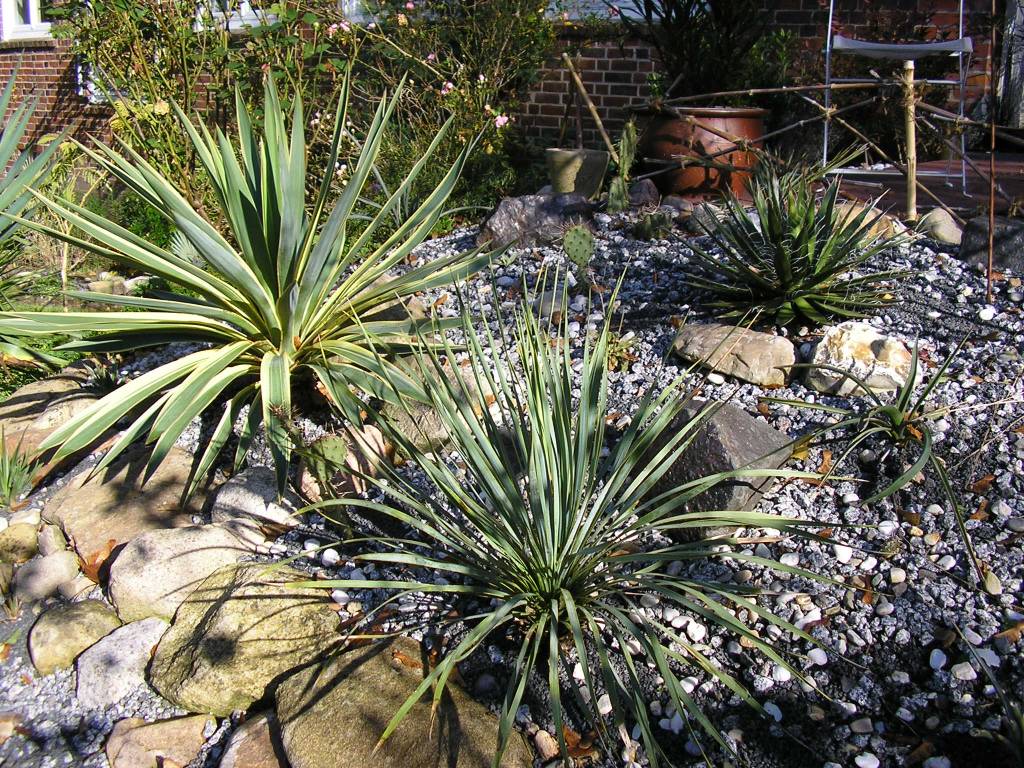 Y. rostrata könnte es länger schaffen, Y. gloriosa var. sowieso, Agave schidigera- dagegen ein Spiel auf Zeit.