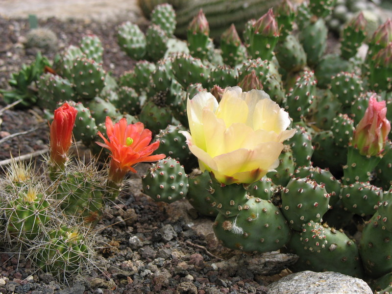 mit "tote Hosen" kann man den momentanen Zustand im Xerophytenbeet beschreiben. Seit einer Woche überwiegend trüb, kühl, nass - eben Regenzeit. Die Pflanzen verharren scheinbar im Ruhezustand, nur die Schnecken sind unterwegs und ich habe mir einen ganzen Eimer "Schneckenfutter" besorgt und heute, nachdem die Frasspuren überhand nahmen, die erste Portion ausgebracht.