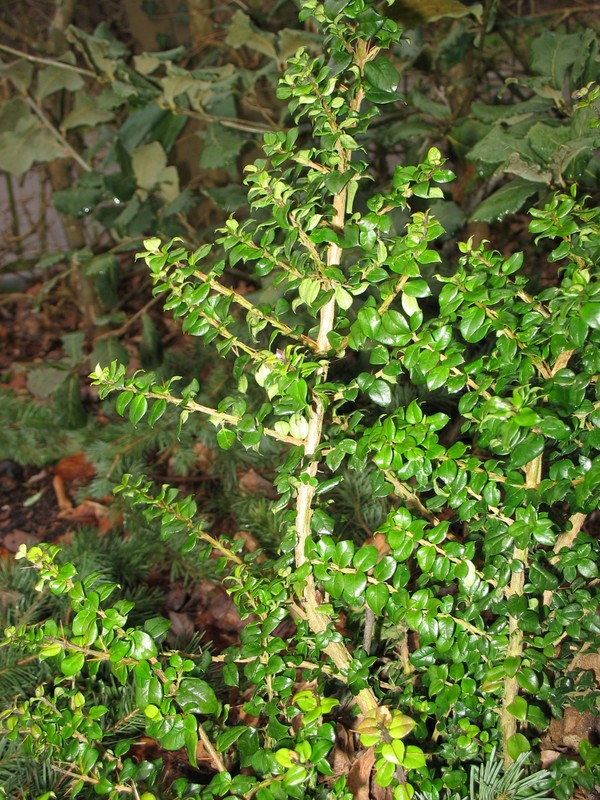 .. zeigt sich /*Rhaphithamnus spinosus*/, dabei ist die Rinde längs der stärkeren Triebe bereits aufgeplatzt. Diese Pflanze aus Chile gilt ohnehin nicht als sonderlich hart. Mal sehen..?