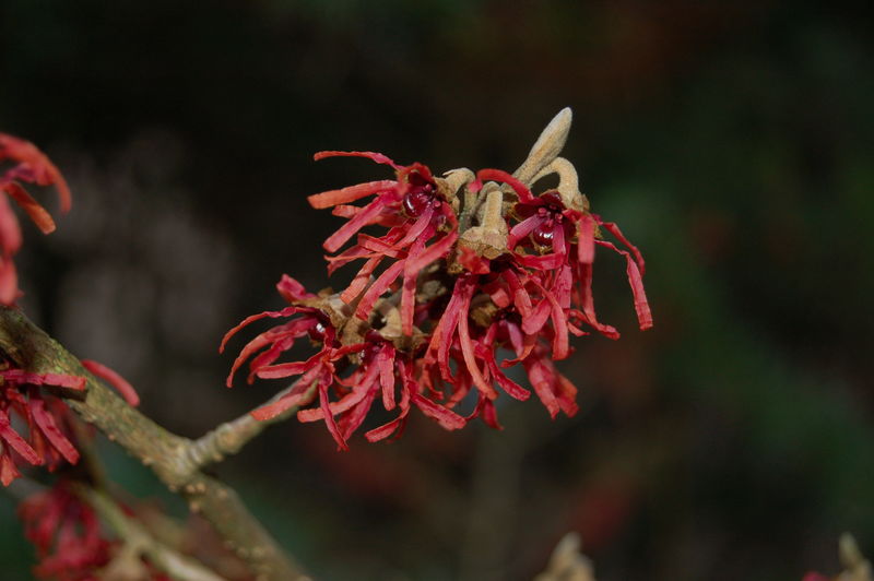 /*Hamamelis x intermedia Diane*/ wirkt v.a. von der Nähe