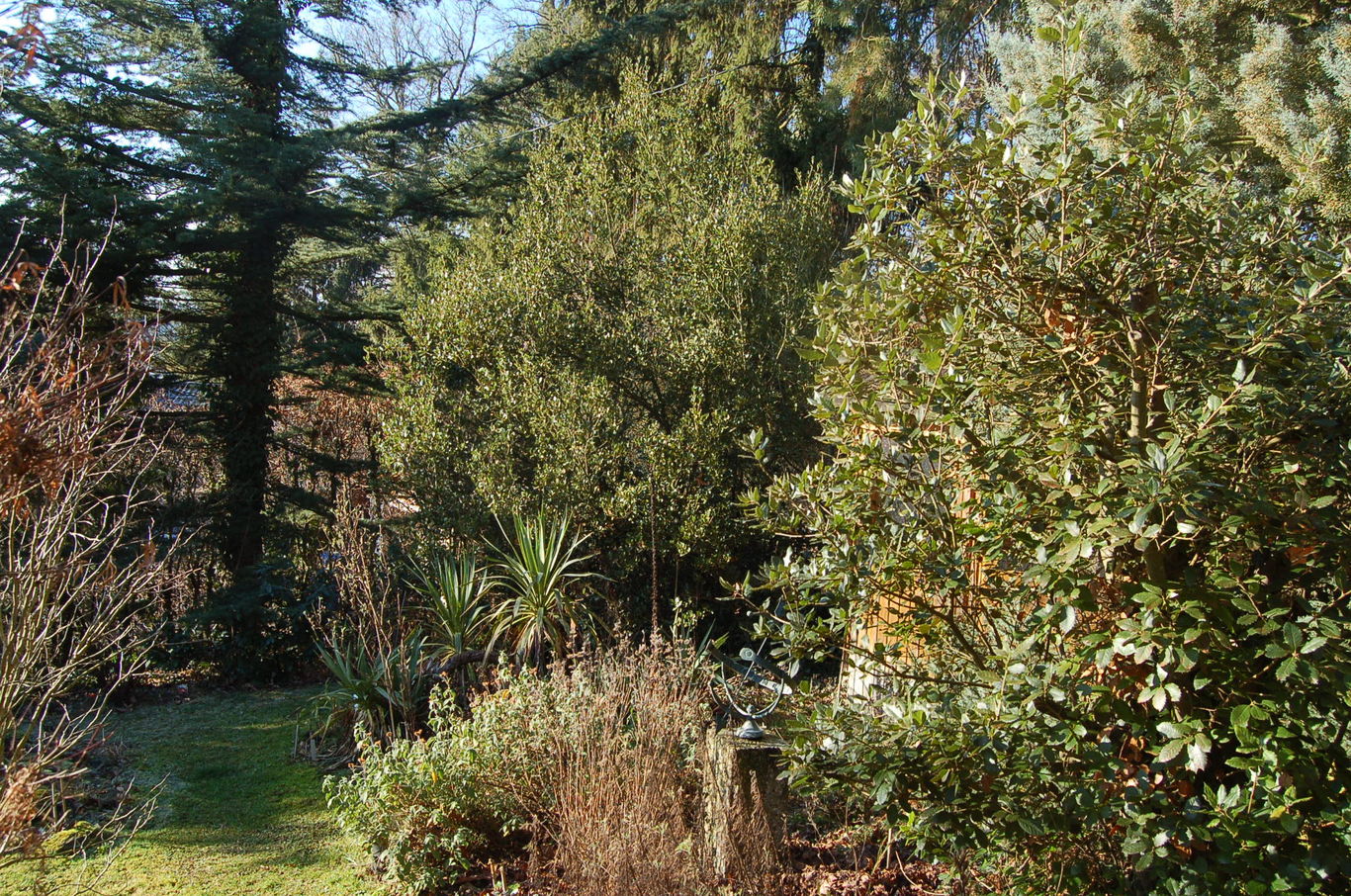 Zwei immergrüne Eichen :Vorne re Quercus ilex und dahinter /*Quercus phillyreoides*/ (ca 5m hoch und 35Jahre alt) komplettieren das mediterrane "Ambiente" zusammen mit Cedrus deodara und div. Zistrosen #AM