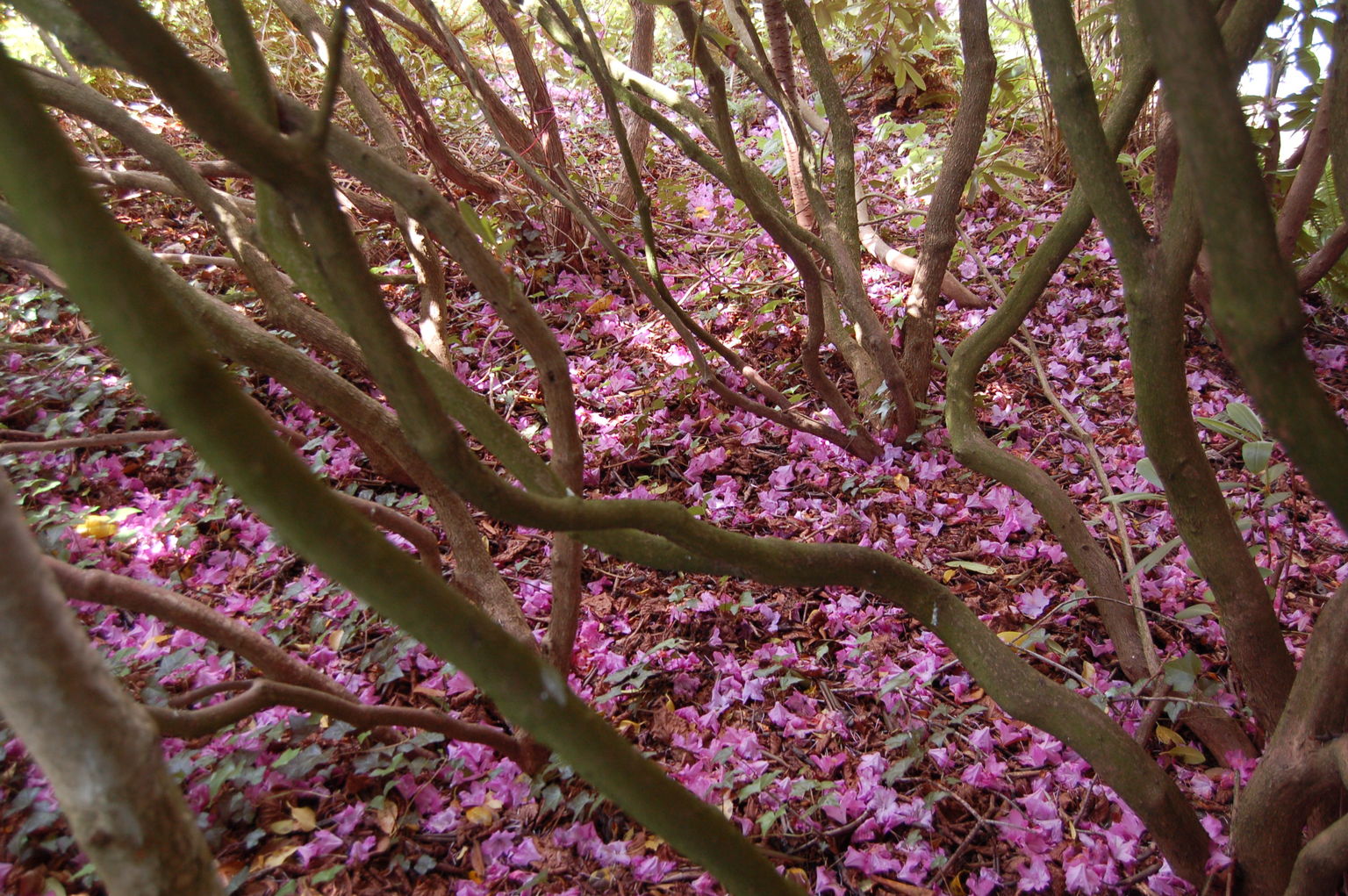 Blütenfall unter hohen Rhododendren, die Massenblüte der Rhodos war dieses Jahr wirklich extrem....viel intensiver als in früheren Jahren#AM
