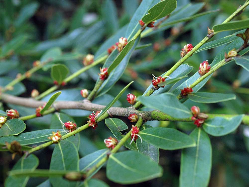 /*Distylium myricoides*/ kurz vor der Blüte, steht bei mir sehr schattig,daher noch nicht weiter.