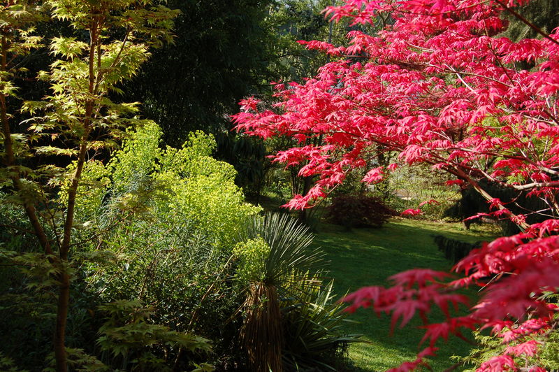 ....und trotzdem findet man immer wieder ein Fotomotiv, wie hier /*Acer palmatum Shindeshojo*/ und Acer palmatum Sangokaku mit Euphorbia characias Wulfenii