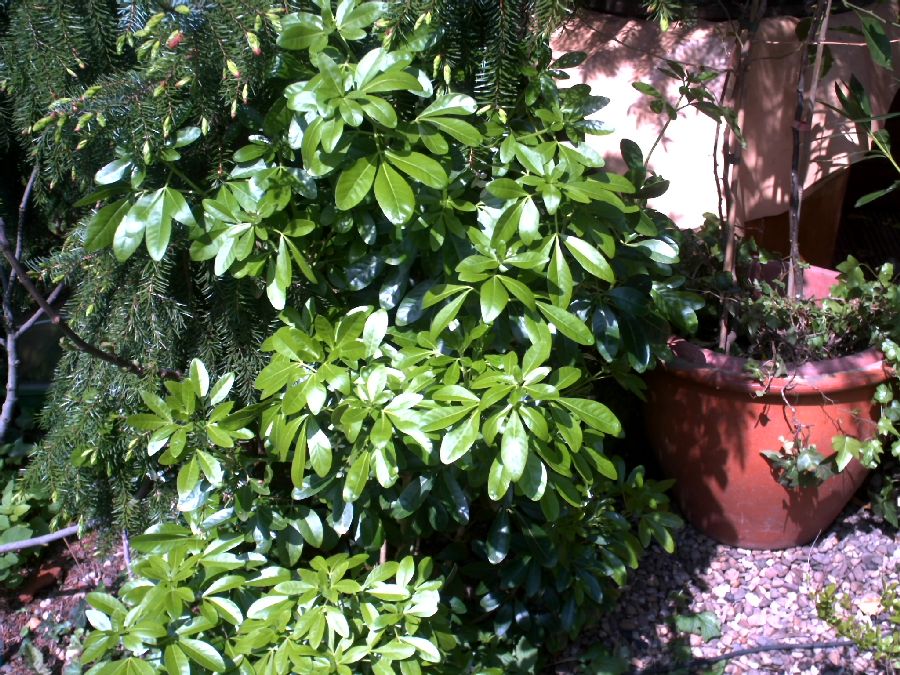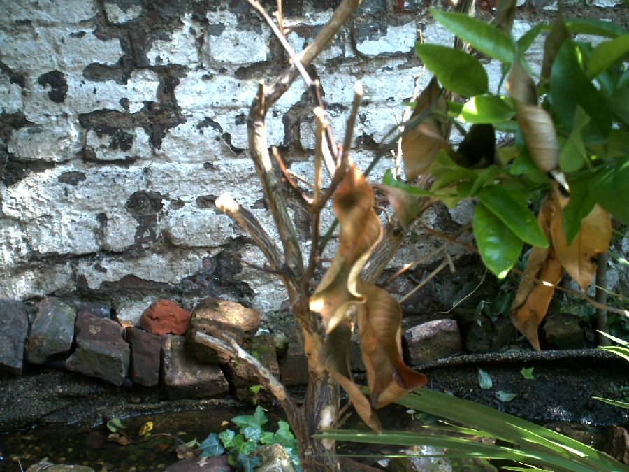 ungeschützer Lorbeer treibt wieder schön aus, ebenso Myrte ( nicht auf dem Bild)