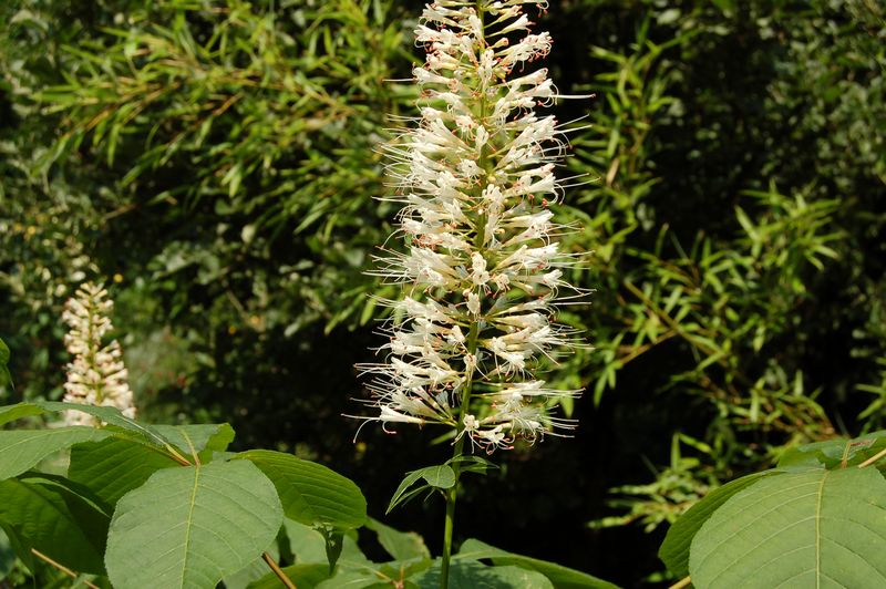 Sehr schöne Blütenkerzen von /*Aesculus parviflora*/ vor Phyllostachys dulcis HK