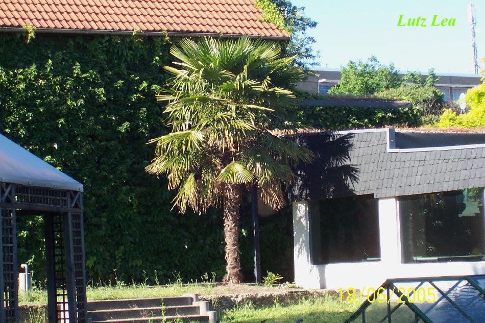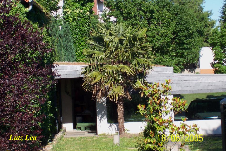auch bei der Trachy in Frankfurt am Main, im Ortsteil Rödelheim, habe ich heute noch schnell angehalten. Diese hatte ich auch schon einmal im "Winterkleid" mit Schnee bedeckt gezeigt. Jene war noch nie im Winter geschützt und gedeiht seit 1997 ausgepflanzt auf dem Gelände einer ehemaligen Baumschule. Höhe der Trachy ca. 4,5-5 m.