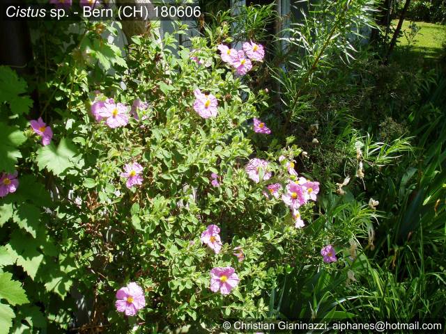 Das erste Bild zeigt eine Zistrose, die seit mindestens 6 Jahren ohne Probleme gedeiht; von der gleichen Art (welche?) gibt es im Garten noch weitere Exemplare, die teilweise 1.70m hoch sind und z. Z. sehr üppig blühen (alle weiss blühenden Zistrosen sind leider erfroren). Hinter der Zistrose ist das Laub der Chilopsis linearis sichtbar, die letztes Jahr zum ersten Mal geblüht hat.