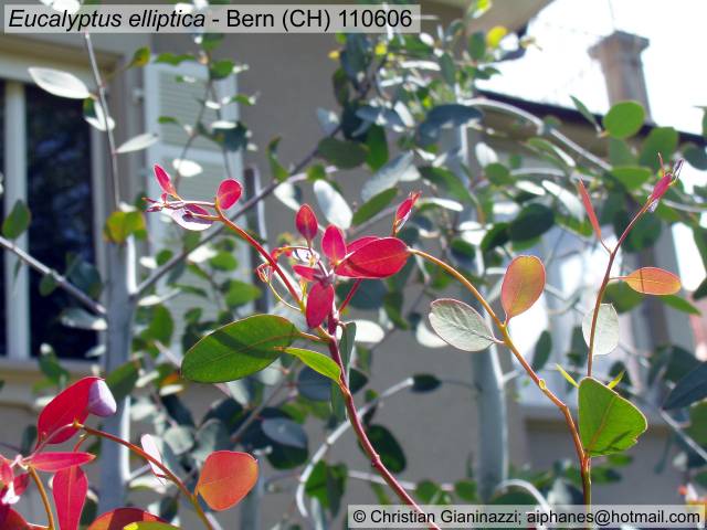 Und hier der farbige Austrieb von 2 Eucalyptus-Arten, die ebenfalls eine gute Winterhärte aufweisen: E. perriniana und E. elliptica.