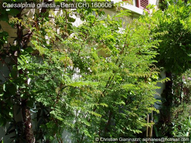 Und hier ein Caesalpinia gilliesii-Exemplar (1.80m), das seit vier Jahren ausgepflanzt ist. Die Winterhärte ist, so wie ich das bisher beurteilen kann, recht gut; nach dem letzten Winter waren nur die vordersten 5 cm der Triebspitzen erfroren. Erste Blütenknospen gesichtet ...