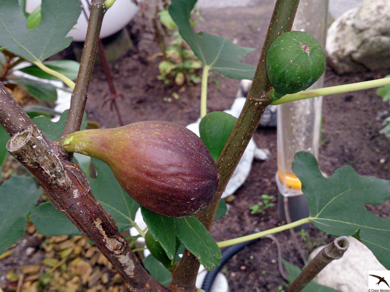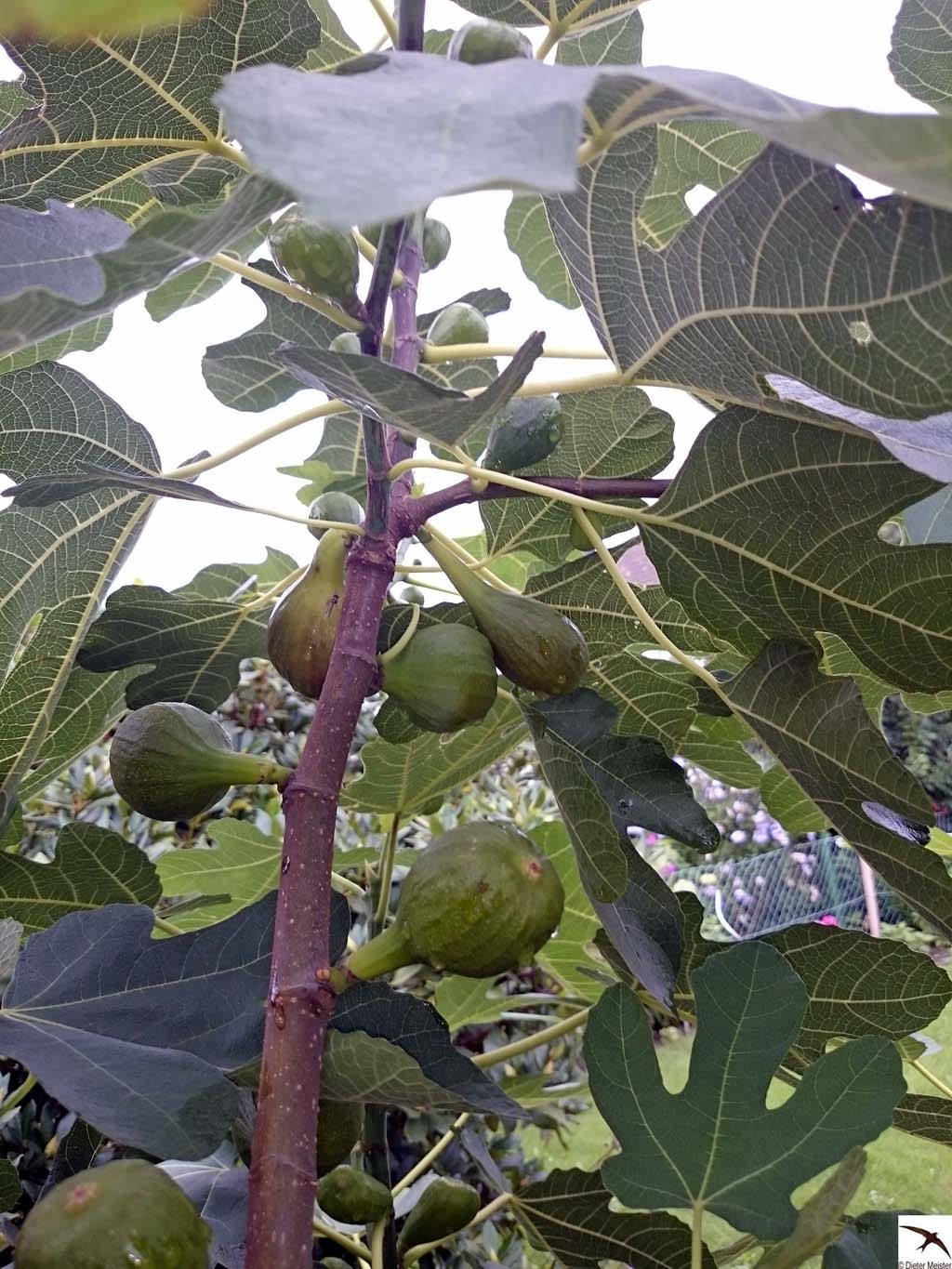 Mitlerweile war das Holz so verfault das ich den Stamm mit 20 cm Durchmesser aud Erdhöhe abgesägt habe. Von unten kommen immer neue Triebe , so hatte ich vor 3 Jahren ein neuen stehen lassen.Dieses jahr gab es Probleme schon im April die Feigen wurden sehr schwer so das ich die Äste Hochbinden mußte.Von Mai bis jetzt hat sich an der Größe der Feige nichts geändert aber dieses Jahr sind die besonders Groß.