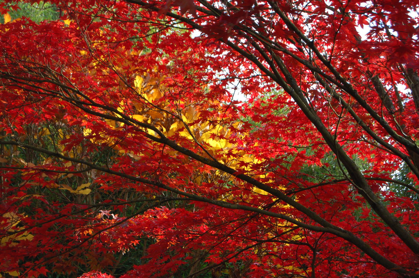 zentral /*Quercus pontica*/ goldgelb mit dem Feuerrot der Jap. Ahorne ist einmalig!