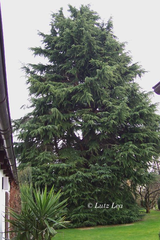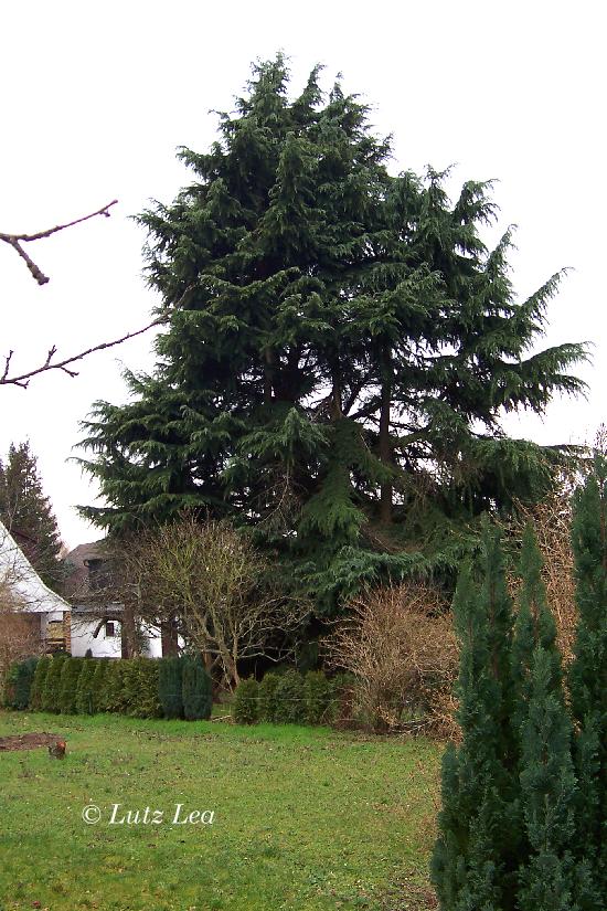 heute sah ich im Langener Stadtteil Oberlinden, in der Joseph-v.-Eichendorff-Straße 14, diese seit 1970 ausgepflanzte, gut 22 m hohe und sehr weit ausladende mehrstämmige Himalaja-Zeder 'Cedrus deodara' im rückwärtigen Garten des dortigen Hauses.