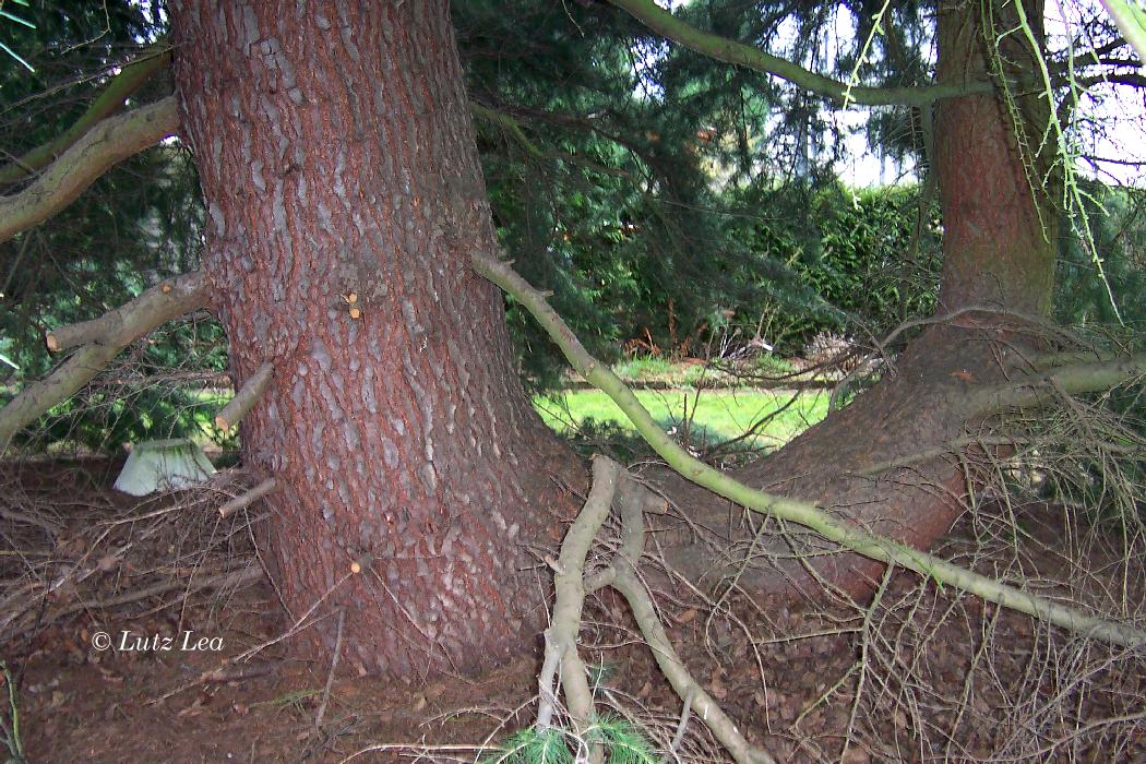 Sehr eindrucksvoll ist der weit am Boden abgegende Seitenast (Nebenstamm) vom Hauptstamm!