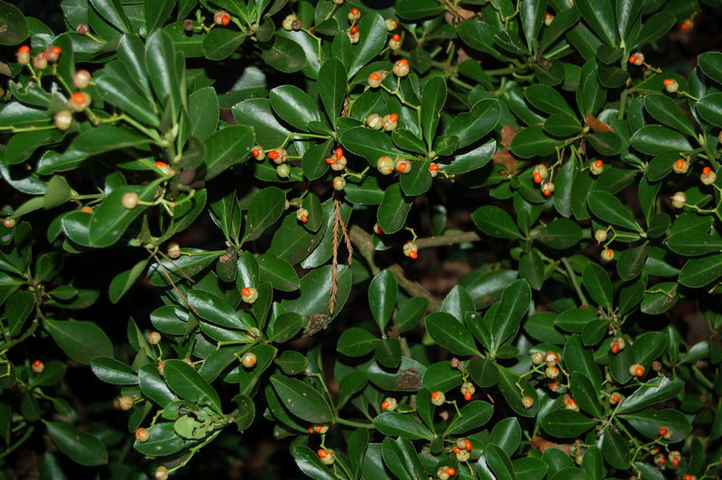 zeigt mitten im Winter /*Euonymus japonicus*/, der durchaus auch Baumformat annehmen kann