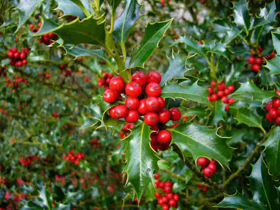 .und weniger spektakuaer, aber in der Masse (hier mit -zigtausenden der dekorativen roten Fruechte) doch ungemein attraktiv: /*Ilex aquifolium*/ (interessanterweise haben alle der vielen hier versammelten Straeucher und teilweise Baeume Fruechte. Ein Maennlein ist aber nicht in Sicht).