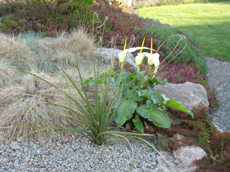 passen meistens recht gut zu einander. Heute Abend in einem "meiner" Gärten erwischt: Nolina mit Arum creticum. Nolina schmückt das ganze Jahr über mit seinen derben Blätter, während der Arum sich alljährlich nur temporär dazu gesellt.