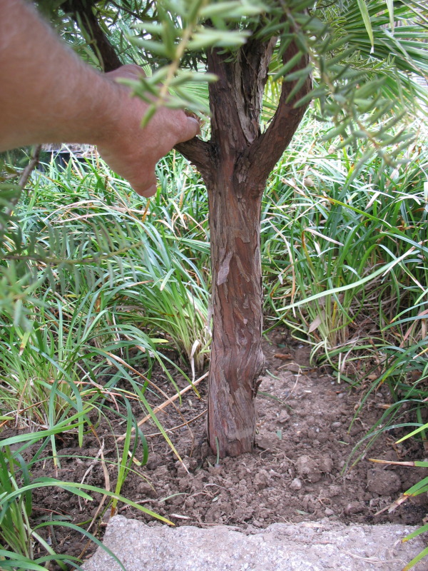 Hat schon ein ordentliches Stämmchen mit in Streifen abblätternder Rinde, mein neuer "Tannenbaum"