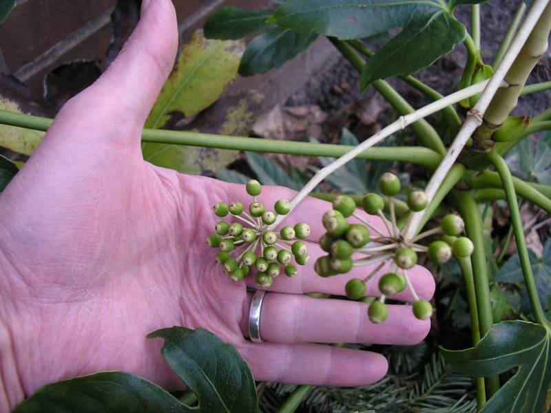 Wo ich schon überrascht war, dass mein kleines Exemplar überhaupt schon geblüht hat bei ca. 60 cm Höhe- jetzt auch noch vemehrungsbereit? Jedenfalls scheinen die kleine Früchte zu wachsen, mal sehen, wann sie ausreifen.