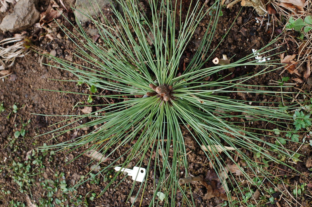 /*Pinus jeffreyi Joppi*/ wird nicht sehr hoch, so dass man auch in Augenhöhe in den Genuss der langen Nadeln kommt