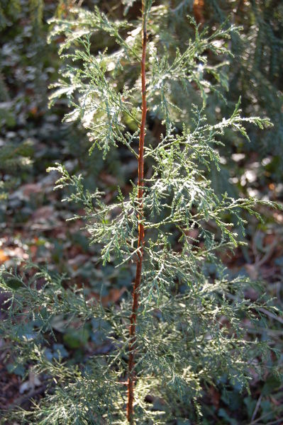 /*Cupressus douclouxiana*/fällt v.a. durch ihre braunrote Rinde auf