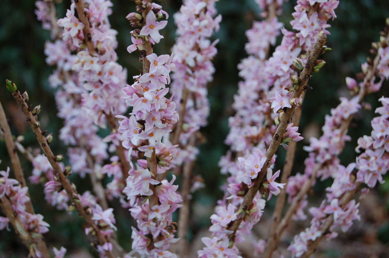 /*Daphne mezereum*/ zwar nicht exotisch, gehört aber auf jeden Fall in den Garten (von Kindern fern zu halten)