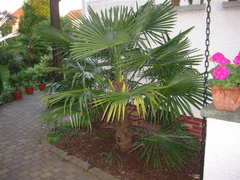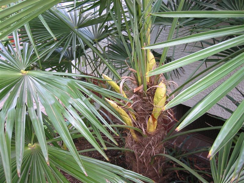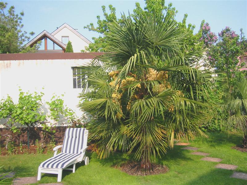 mehr an Blättern und Blüten geht nicht! Ca 4m hohe Trachy ( im März 2000 mit ca 50cm Stamm gepflanzt)