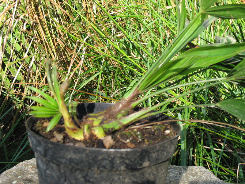 dieses Thema hatten wir bereits vor einem Jahr. Jetzt habe ich unter meinen Trachycarpus-Sämlingen wieder einen Pflanze gefunden bei der der Speer mittels "Notausgang" die Richtung ändert