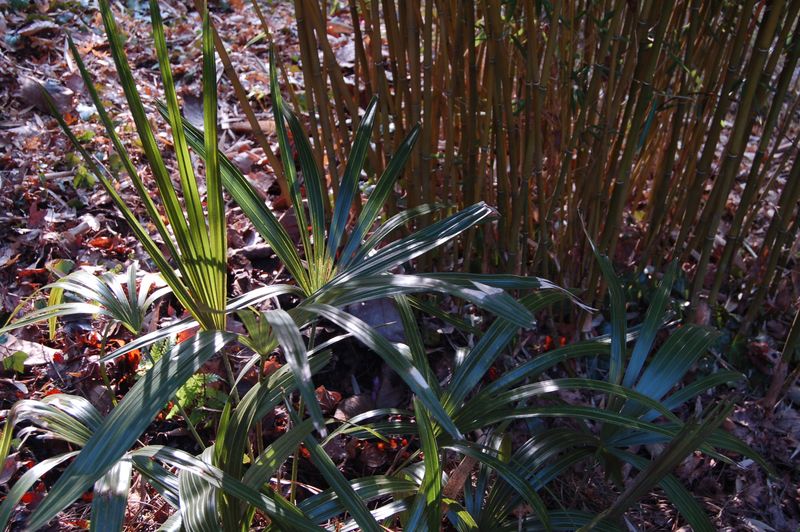 Mit typ. "Metall-Effekt" die eleganten Blätter von Rhapidophyllum (Leider fror vor Jahren der Hauptstamm ab!!)