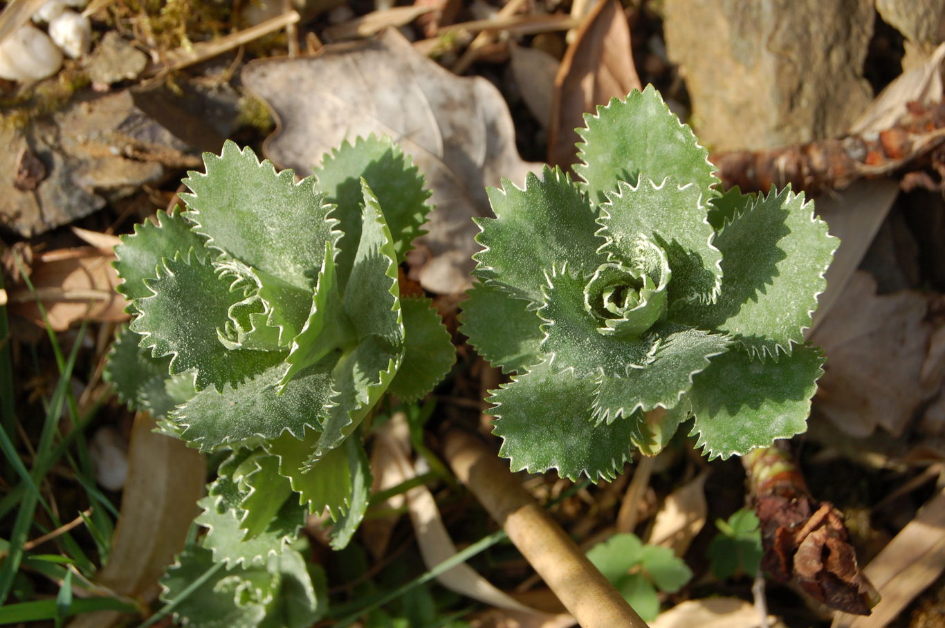 und auch OHNE Blüten immer wieder ein Genuss (Ideal für's Yuccabeet):/*Primula marginata 'Drake's Form'*/#AM