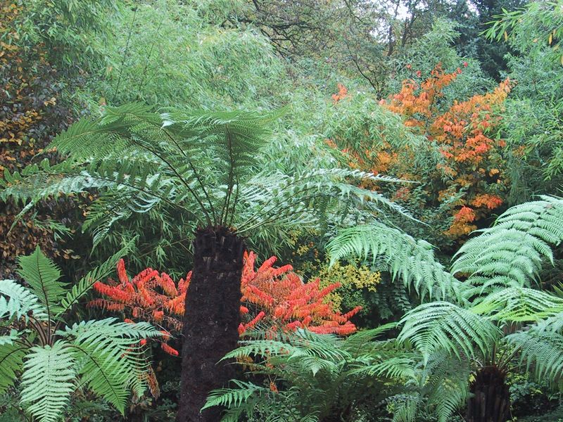 Leider nur im Kübel, aber vor herbstlichem Hintergrund (Rhus typhina laciniata,Bambus-Hain u.Parrotia persica) absolut passend.