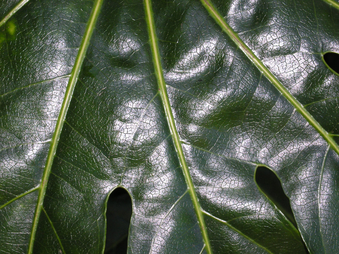 Wie schafft es die Fatsia, daß ihre großen Blätter (d bis 60cm) trotz Eischichten, Sturm und Frost immer taufrisch aussehen?