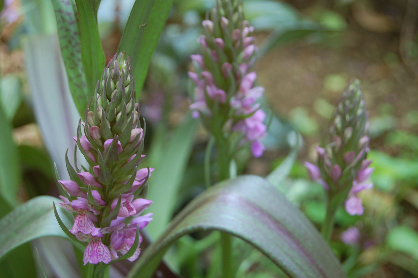 1./*Dactylorhiza maculata-Hybride*/ mit auffallenden dunkel gefleckten Blättern, z.T. bis zu 40cm hoch werdend #AM