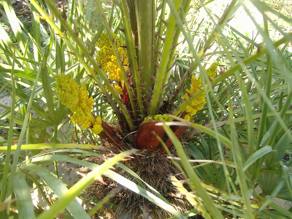 Aktuelle Bilder meiner Chamaerops habe ich gerade keine, hier mal die Blüte der Cerifera vom letzten Juni.