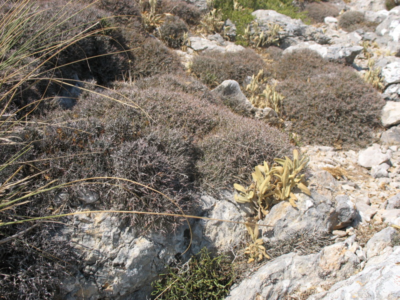 /*Teucrium subspinosum*/ mit /*Phlomis italica*/ - letzter auch wieder einmal eine nomenclatorische Irrfahrt, denn P. italica ist ein Endemit Mallorcas, genauso wie Teucrium asiaticum![]()