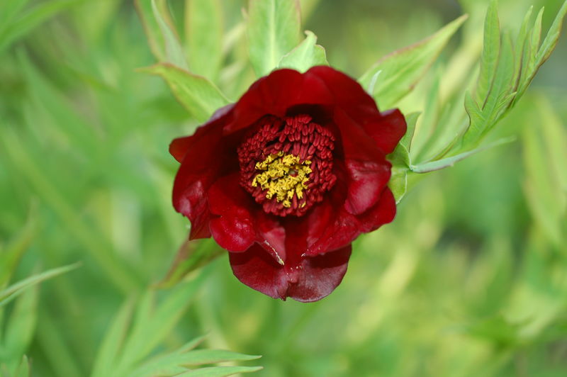 /*Paeonia delavayi*/ hat noch nie so schön geblüht wie dieses Jahr. Der Busch nimmt immer größere Ausmaße an (fast 2m Durchmesser) und besticht v.a. durch sein filigranes Laub