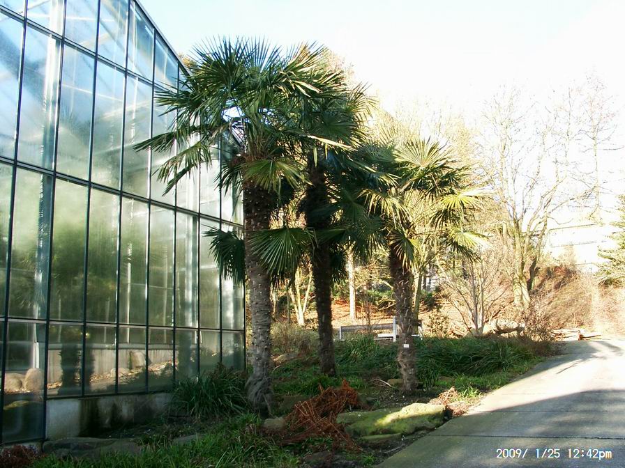 Dreiergruppe zwischen den Gewächshäuser/*Trachycarpus fortunei*/