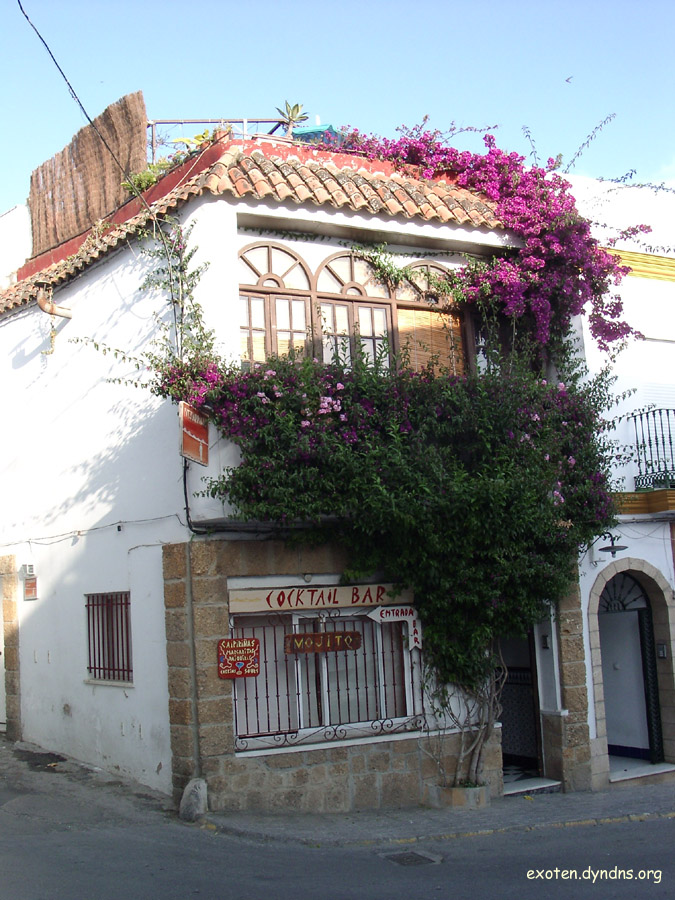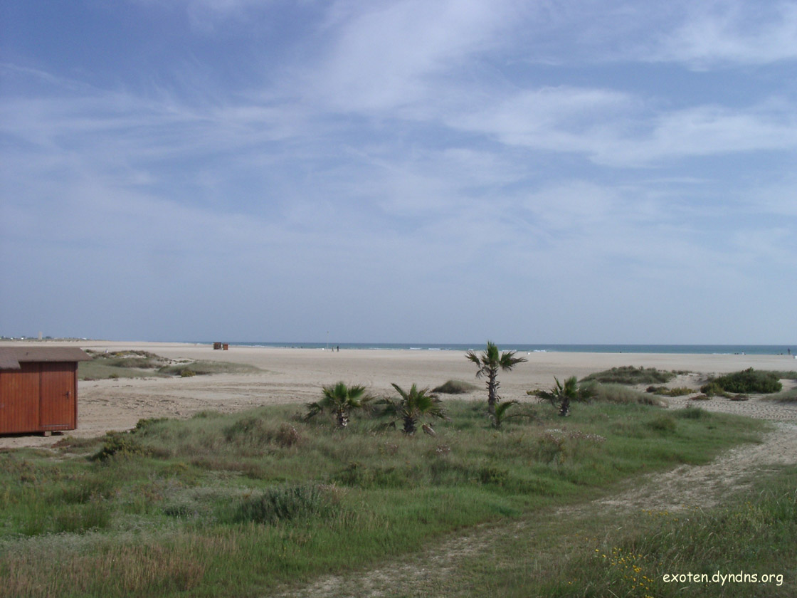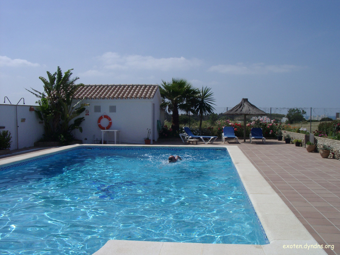 Als wir in Jerez landeten, hatten wir nur den Flug und das Auto gebucht - aber wir haben es mit den Unterkünften immer prima getroffen. In der Nähe von Conil de la Frontera fanden wir ein Ferienhaus mit gepflegtem Exotengarten (Washingtonias, Strelitzien, Yuccas, Ölbäume, Hibiscus, herrliche Rosenbeete) und großem Pool, wo wir erst mal ein paar Tege verbrachten. Es war uns Ausgangspunkt für einige Tagestouren an der Küste.