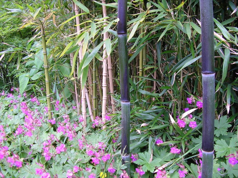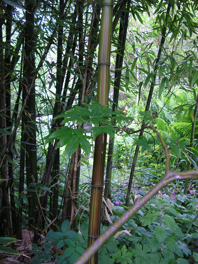 diesen gestreiften Bambus, der teilweise im nigra boryana hain bzw. daneben wächst, kann ich nicht sicher bestimmen, könnte Ph. iridescens sein, links Ph.aurea,