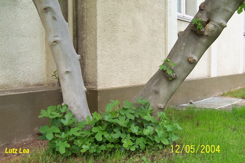 ... hier noch eine "Nahaufnahme" der für hiesige Verhältnisse recht starken Stammanläufe bei Ficus carica - 'Höchst' mit zahlreichen Wurzelausläufern.