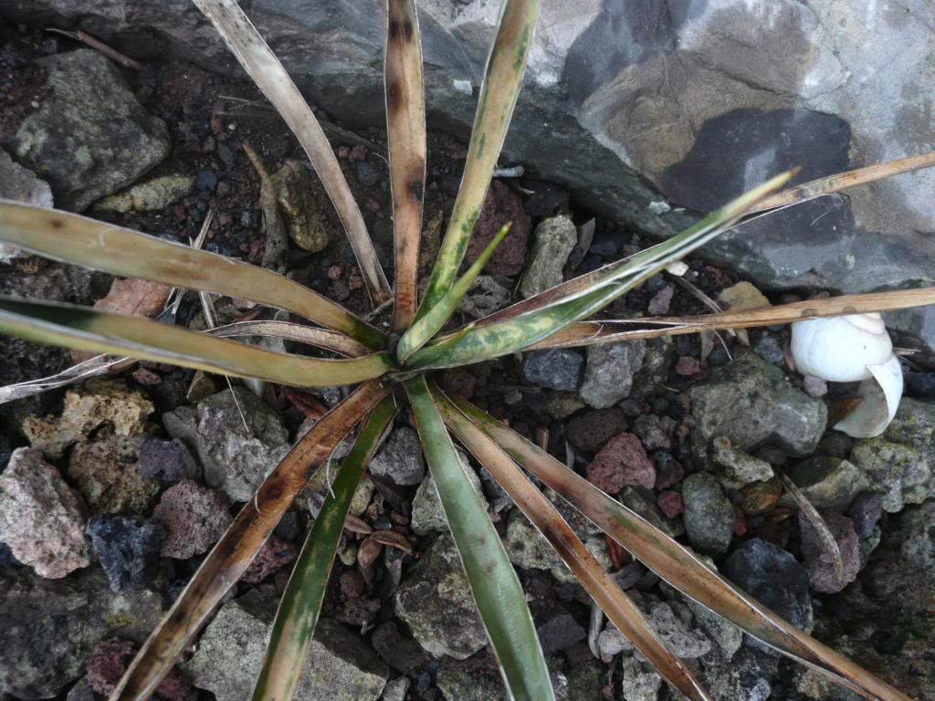 die /*Yucca nana x baccata*/ sonst auch nie irgendwelche signifikanten Schäden, sah schon zu Winterbeginn nicht gut aus, bis vor kurzem hatte ich aber noch Haffnung dass wenigstens das Herz noch o. k. ist, aber heute habe ich den Speer ziehen können - sieht ganz und gar nicht gut aus - aber die Hoffnung stirbt zuletzt.