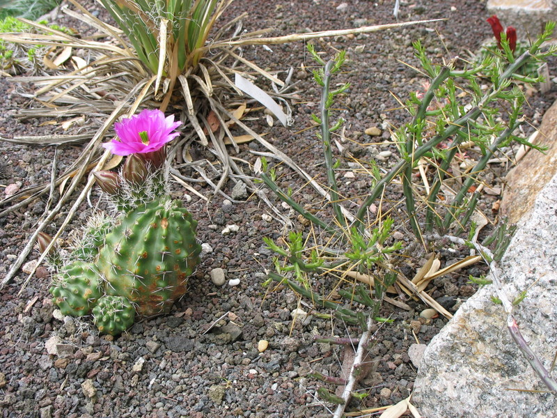 zaghaft kommt Echinocereus fendleri var. miniatur (so steht es zumindest auf dem Etikett, gibt es diese Form überhaupt???) in Blüte.