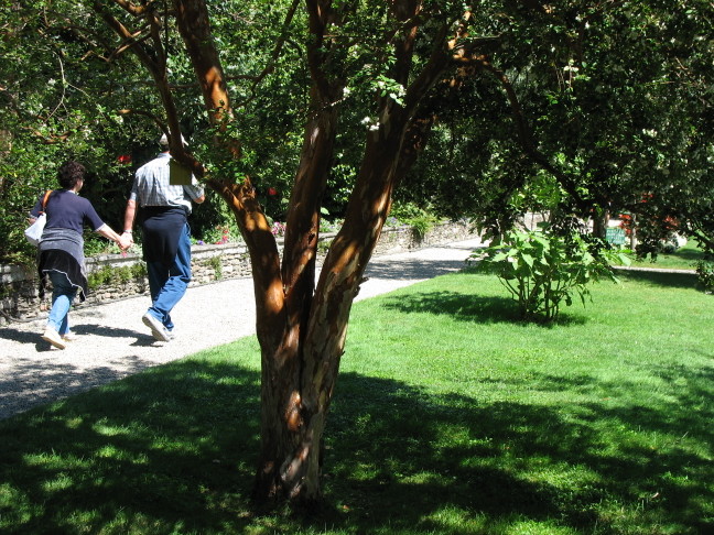 oder Luma apiculata, wie sie jetzt genannt wird, aus Chile. Beeindruckend der dicke Stamm mit einer Färbung die einem Eucalyptus oder Arbutus in nichts nachsteht. Überhaupt befindet sich auf der Isola Madre eine umfangreiche Myrtensammlung mit Arten aus dem Mediteranen Raum, Südamerka und Neuseeland, aber keine davon so eindrucksvoll wie diese.
