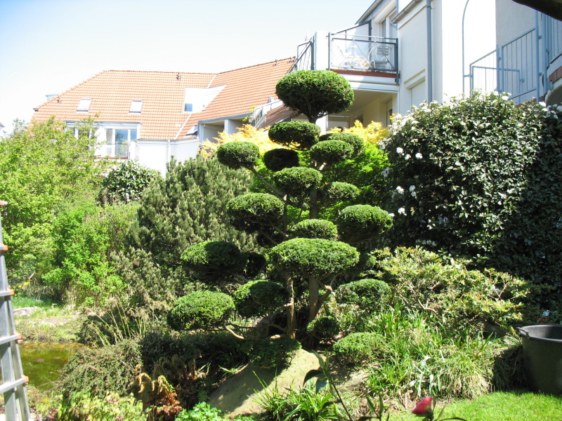 und der war heute für diese Muschelscheinzypresse Chamaecyparis obtusa 'Nana Gracilis', welche hier an der Grenze zu groß zu werden drohte. Nach dem ersten Schnitt vor Jahren sah sie grausam aus, aber inzwischen bekommt sie Struktur. Natürlich muss man so was mögen!