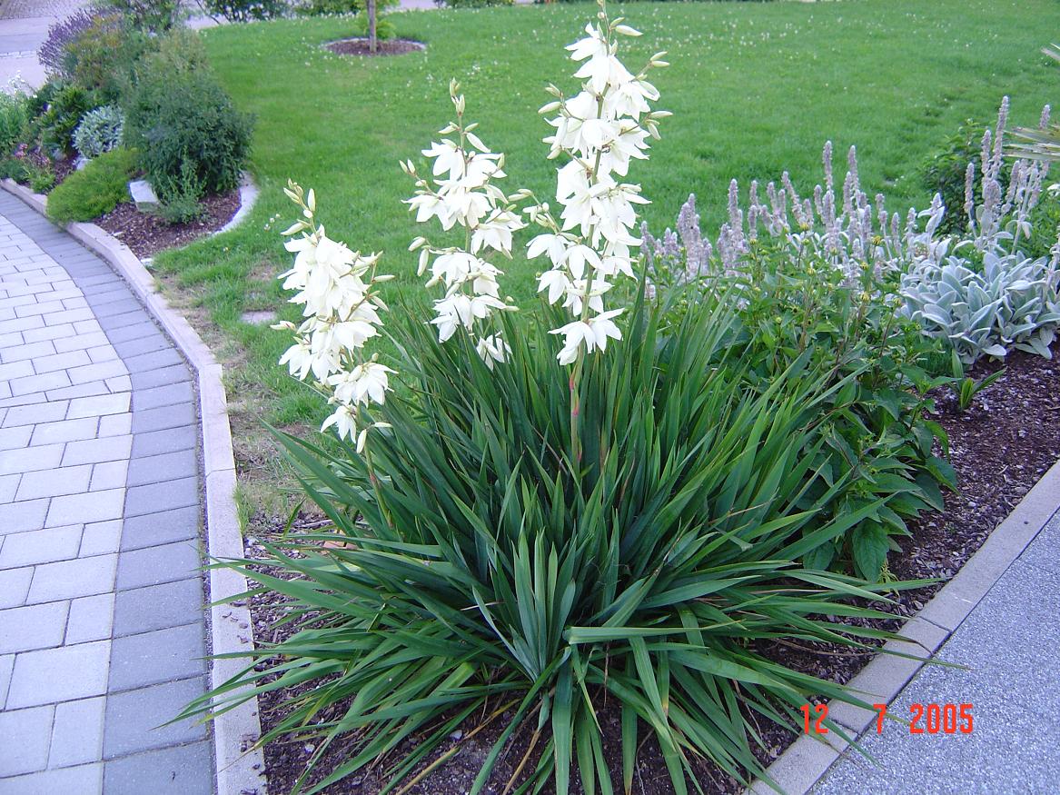 Zwar kein rechter Exot mehr, aber dennoch schön, wenn diese Yuccas in Gruppen blühen: