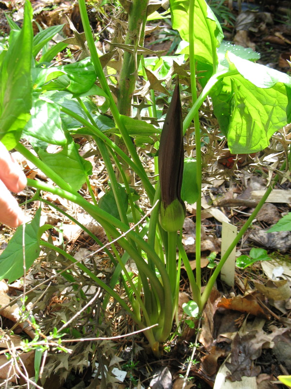 im Anmarsch und scheint seinem Namen alle Ehre zu machen. Arum nigrum blüht erstmals bei mir im Garten. Kontrastprogramm