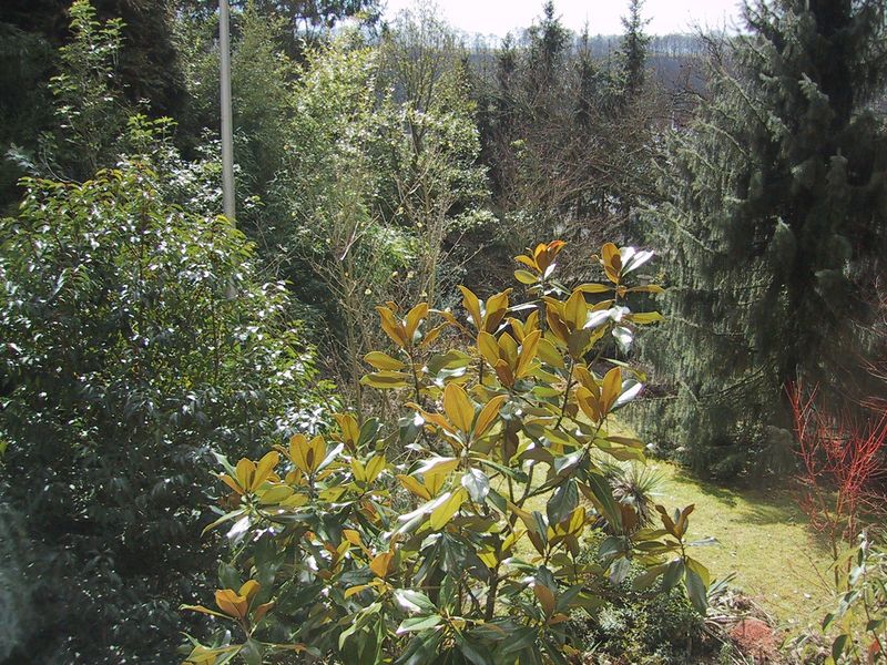 Vorfrühlingsimpressionen mit Immergrünen: 1.Magnolia grand.